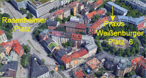 Die Praxis liegt am repräsentativenWeißenburger Platz und ist über einen kurzen Fußweg vom Rosenheimer Platzaus gut zu erreichen. Am Rosenheimer Platzhalten alle S-Bahn-Linien und die Straßenbahnen 15 und 25.